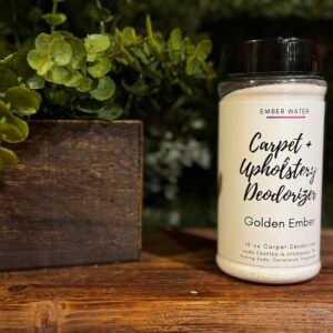 Refresh your space the natural way. Our Carpet + Upholstery Deodorizer is crafted without harsh chemicals—just a gentle blend ingredients and premium fragrance oils. Safe for use around pets and kids, this sprinkle eliminates odors and leaves behind a clean, long-lasting scent. Simply shake, sit, and vacuum. Clean never smelled so good. 16 oz bottle
